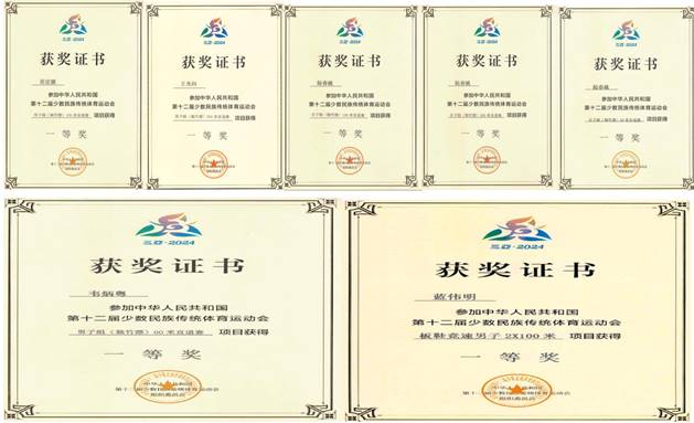 独竹漂队在2011-2024年连续四届代表广西全国少数民族传统体育运动会,共夺得金牌13枚,占广西代表团参加竞赛项目总获20枚金牌的65%,被誉为广西代表团的“梦之队”;尤其在2024年全国第十二届少数民族传统体育运动会独竹漂项目比赛中,我校运动员表现卓越,包揽该项目的所有金牌,夺得6个一等奖,7个二等奖,2个三等奖;在板鞋项目比赛中,我校运动员团结拼搏,获得1个一等奖,4个二等奖,3个三等奖,实现了广西队在全国少数民族传统体育运动会上板鞋项目金牌“零”突破,我校运动员的表现为广西代表团自1991年以来创赛会最佳成绩起到了决定性作用。