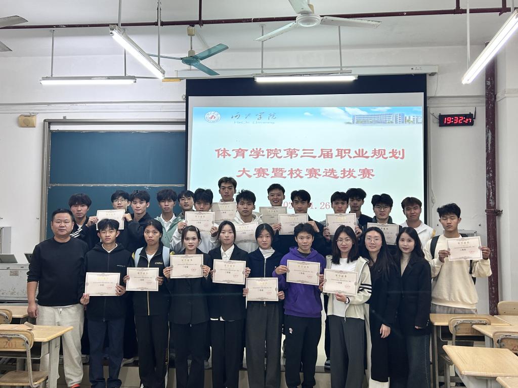 11月26日下午,体育学院第三届大学生职业规划大赛暨校赛选拔赛在格致楼202教室顺利举行。本次赛事旨在强化学生生涯教育与就业指导,进一步增强其职业规划意识,引导学生通过学思践悟提升综合素质与核心竞争力,提前做好就业准备、树立择业新观念,助力实现高质量充分就业。