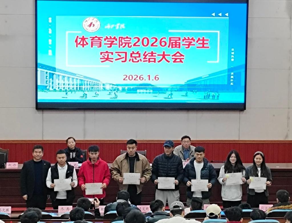 2026年1月6日,体育学院在东区弘毅楼1-205会议室召开2026届毕业生实习总结大会。会议由学院教学秘书赵丹主持,分管教学副院长王有基、全体实习带队指导教师及2026届全体实习生共同参会。